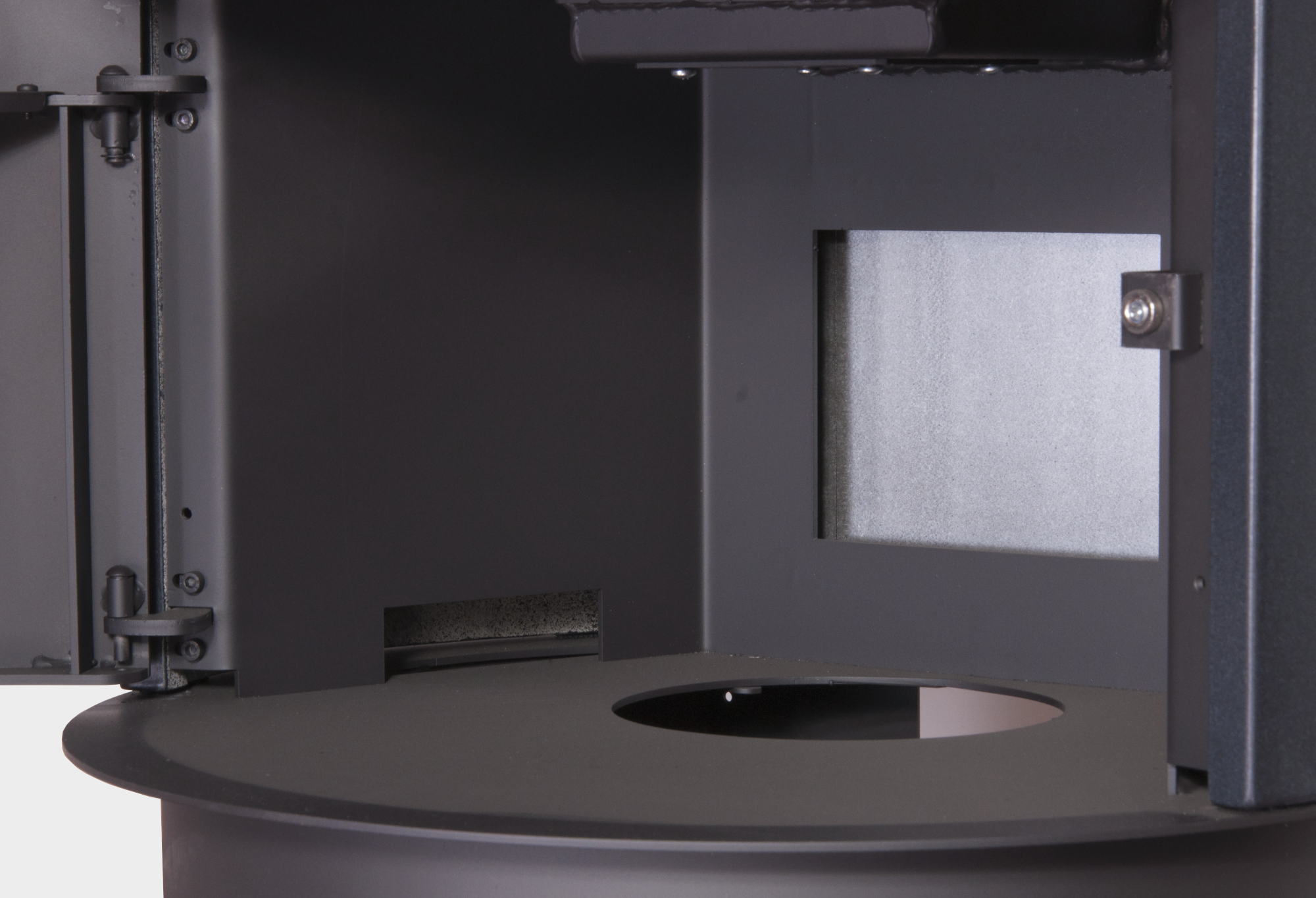 - A külső levegőellátás alulról vagy hátulról csatlakoztatható, növelve az égés hatékonyságát.
