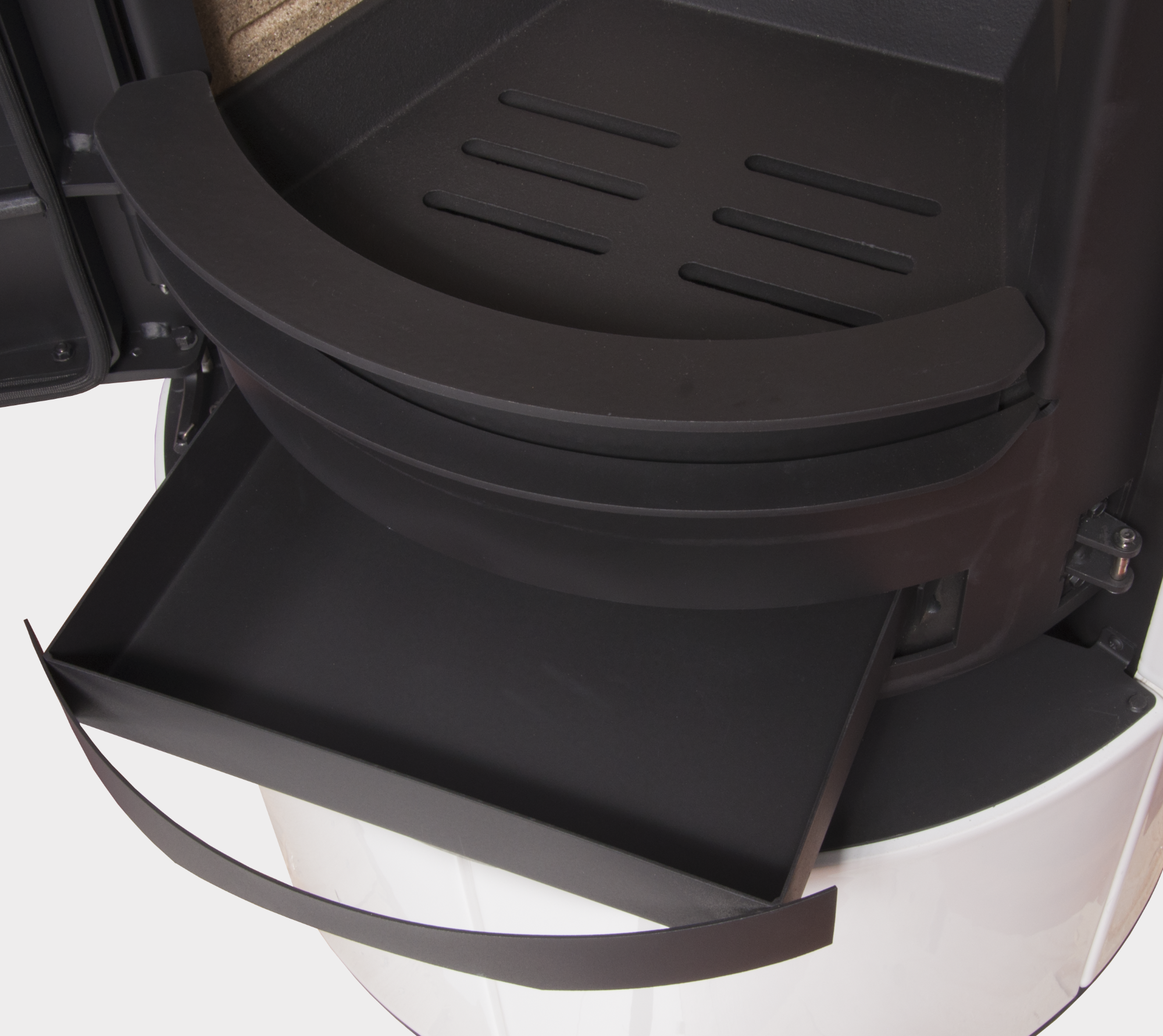 - Praktikus tárolóhely a tűztér alatt, amely kényelmes és esztétikus fatárolást biztosít.