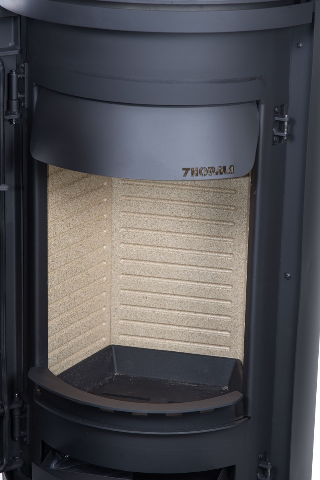 Optimális égés, maximális hatékonyság - a belső vermikulit bélés és az öntöttvas rostély garantálják az égés hatékonyságát. Az alsó vagy hátsó külső levegőellátás optimalizálja a légáramlást. A füstcső csatlakozása a felső részen lehetséges, így rugalmas telepítést biztosít.