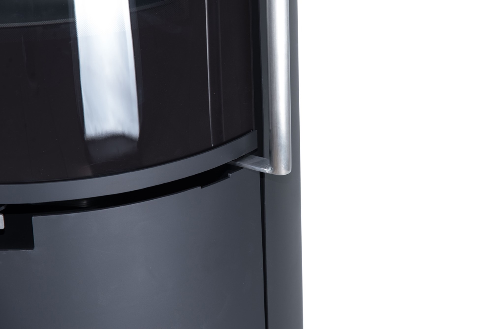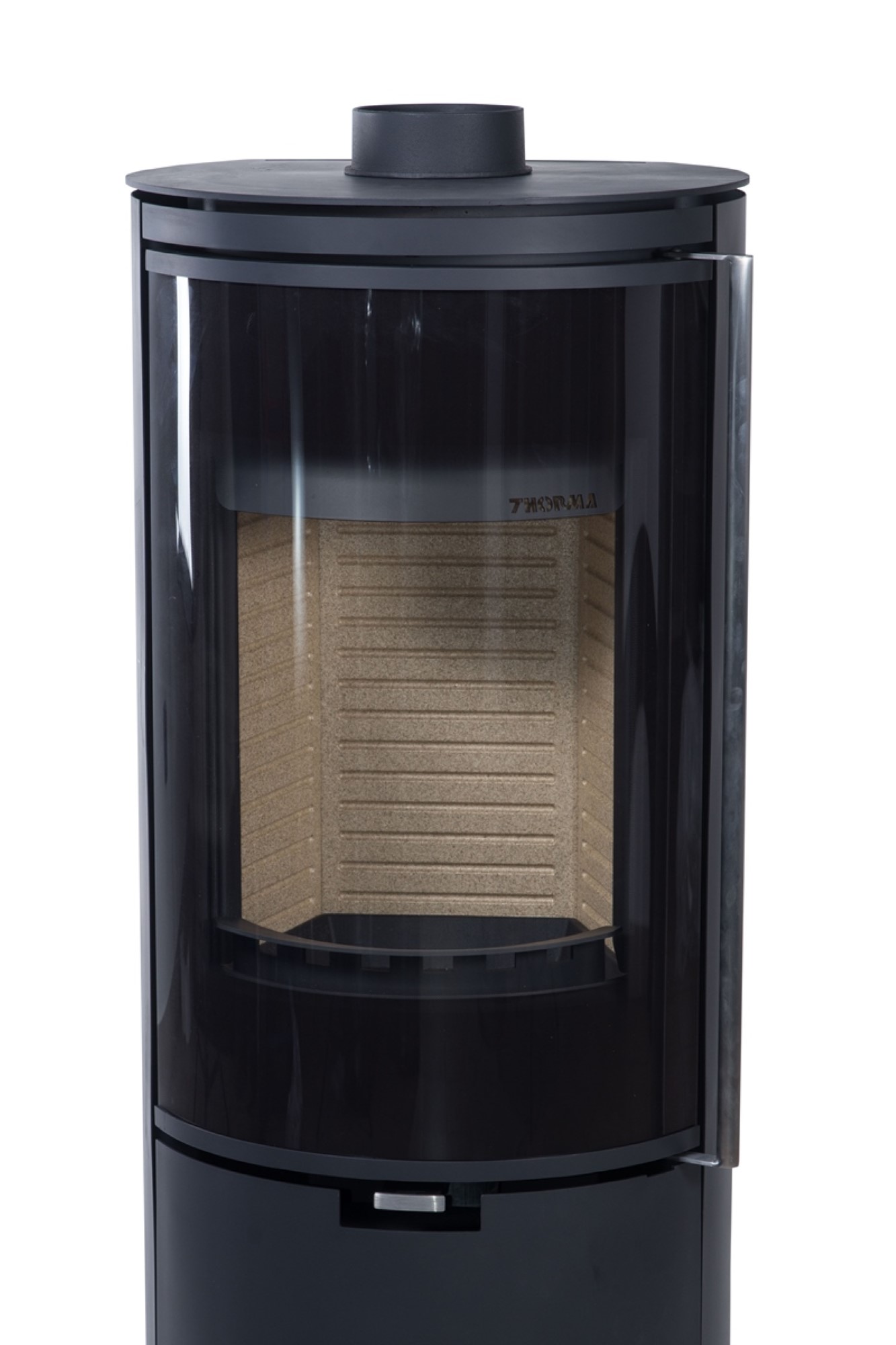 Elegáns kialakítás, látványos tűz - masszív acélszerkezet teljes üvegezésű ajtóval zavartalan kilátást kínál a lobogó lángokra. A nikkelezett fogantyú, amely az ajtó teljes hosszában húzódik, luxusérzetet kelt.