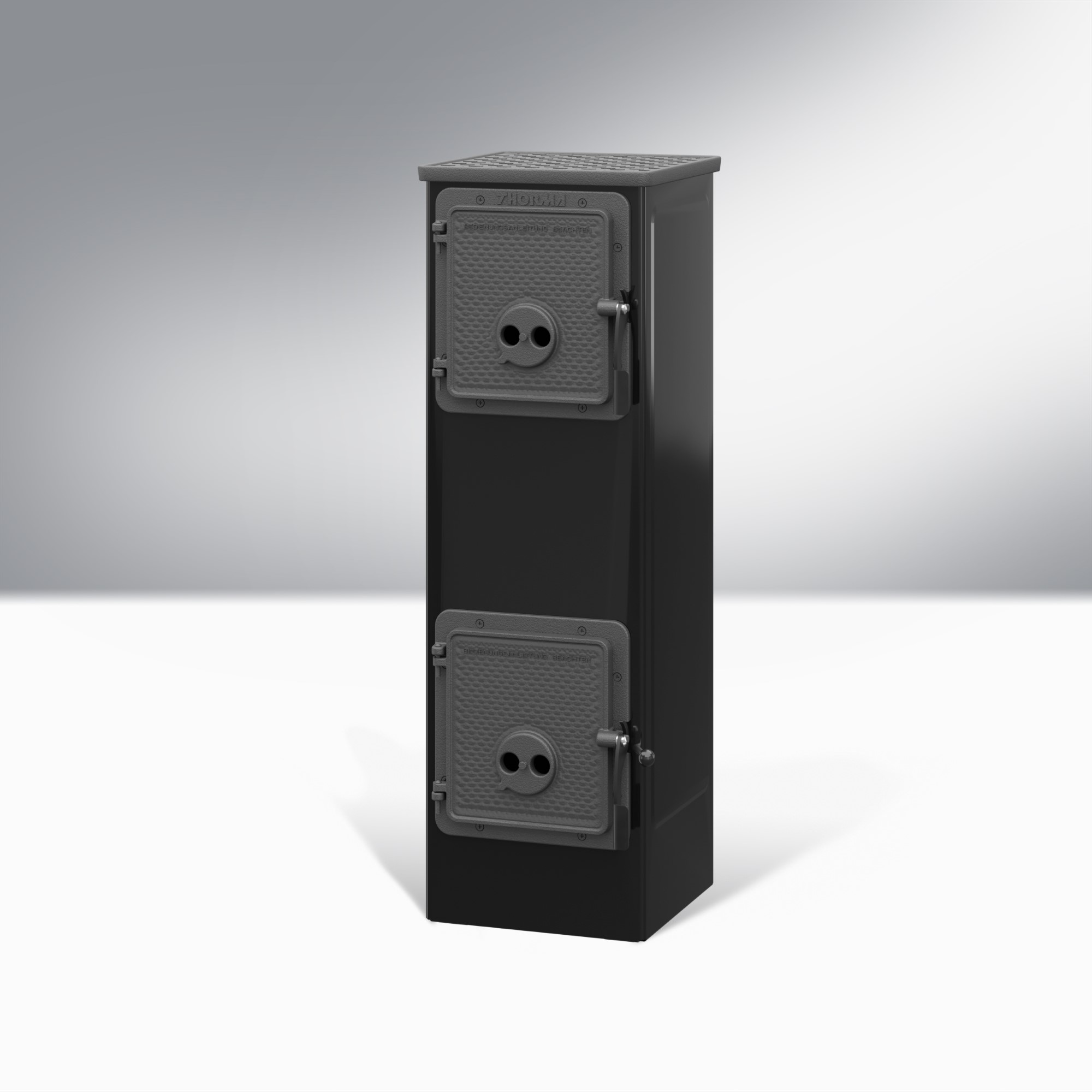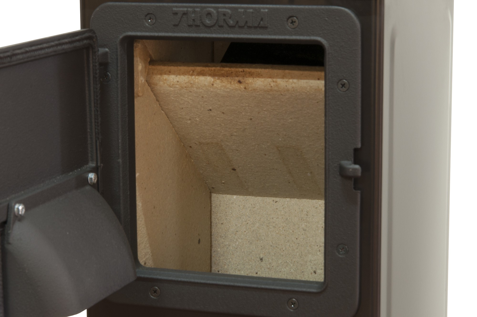 öntöttvas rostéllyal van felszerelve, masszív tűztér fedéllel, valamint praktikus ajtókkal a tűztér és hamutartó számára, így megkönnyítve a használatot.