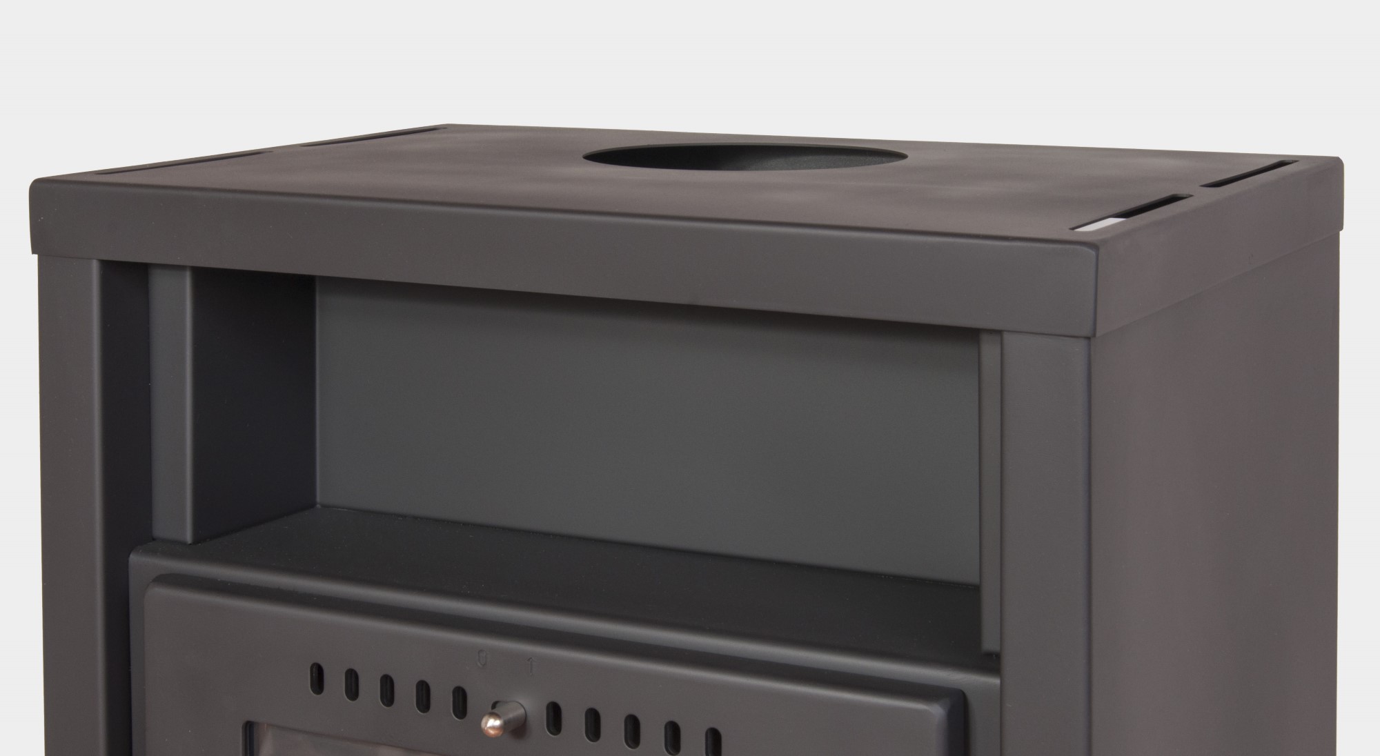 A nikkel fogantyú finom részlete elegáns megjelenést kölcsönöz a kályhának.
