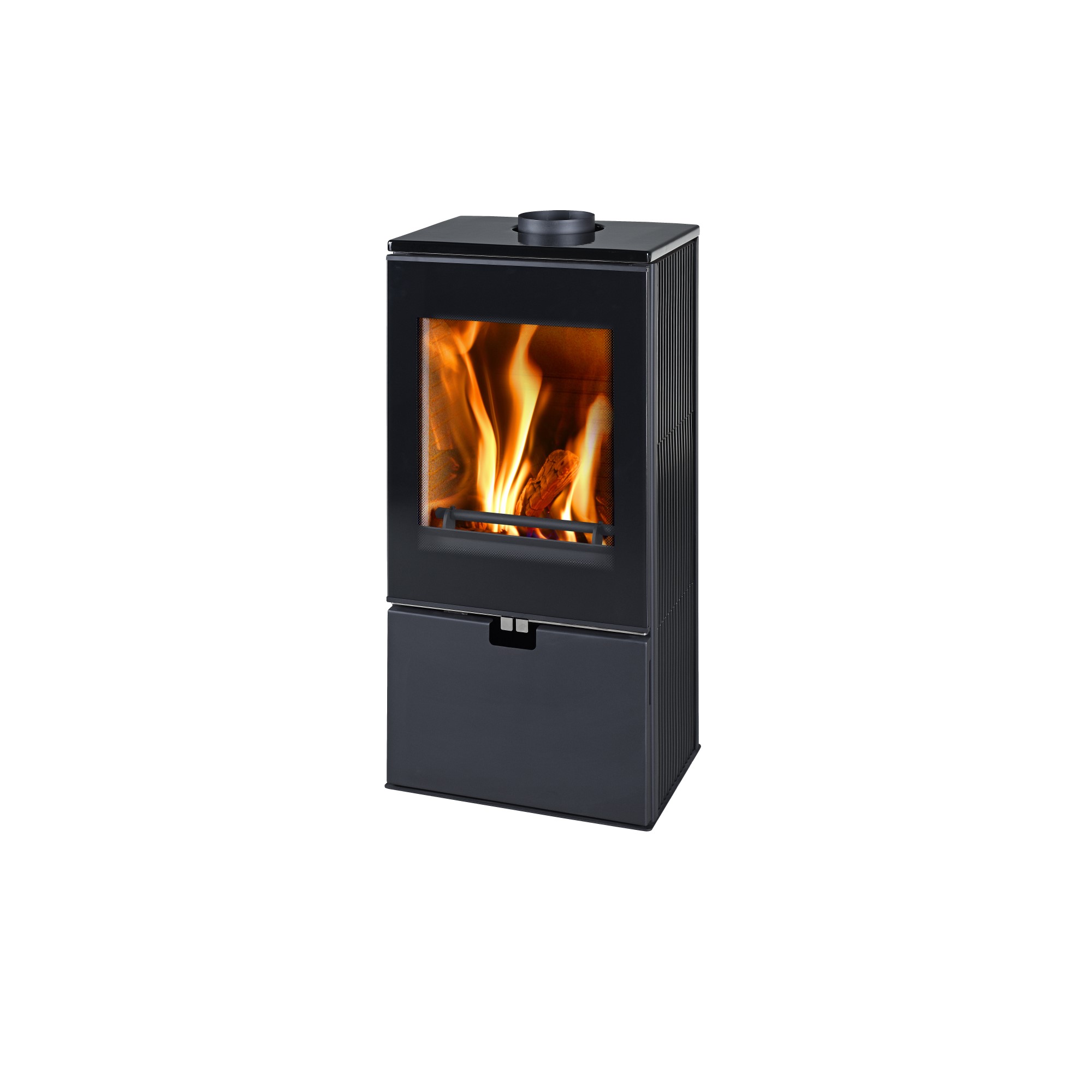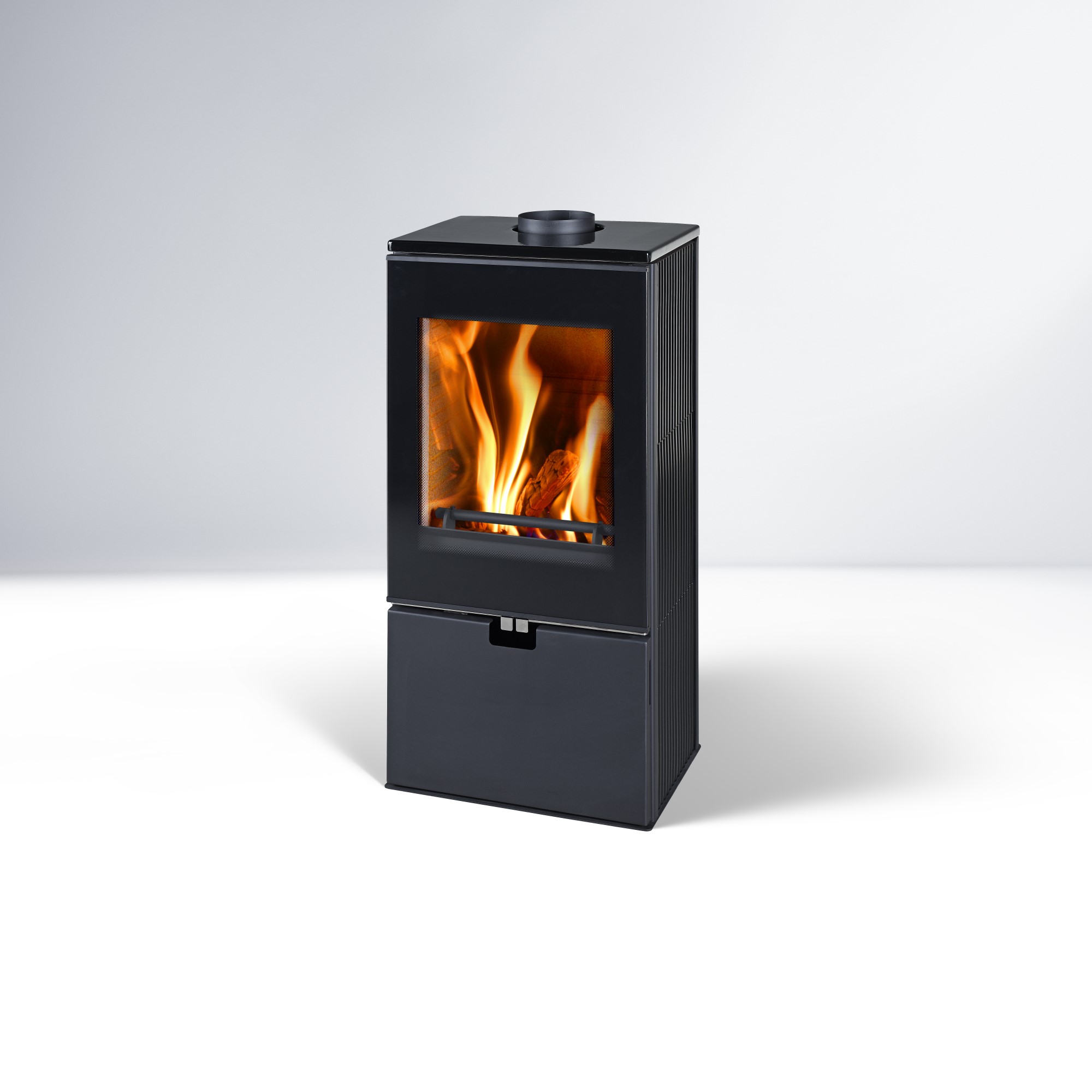 A praktikus alsó tárolóhely tökéletes a tűzifa vagy egyéb kiegészítők tárolására. A teljesen fémből készült változat mellett elérhetők kerámia burkolattal ellátott modellek is, fehér vagy fekete színben, így kiválaszthatja az enteriőrjéhez leginkább illő változatot.