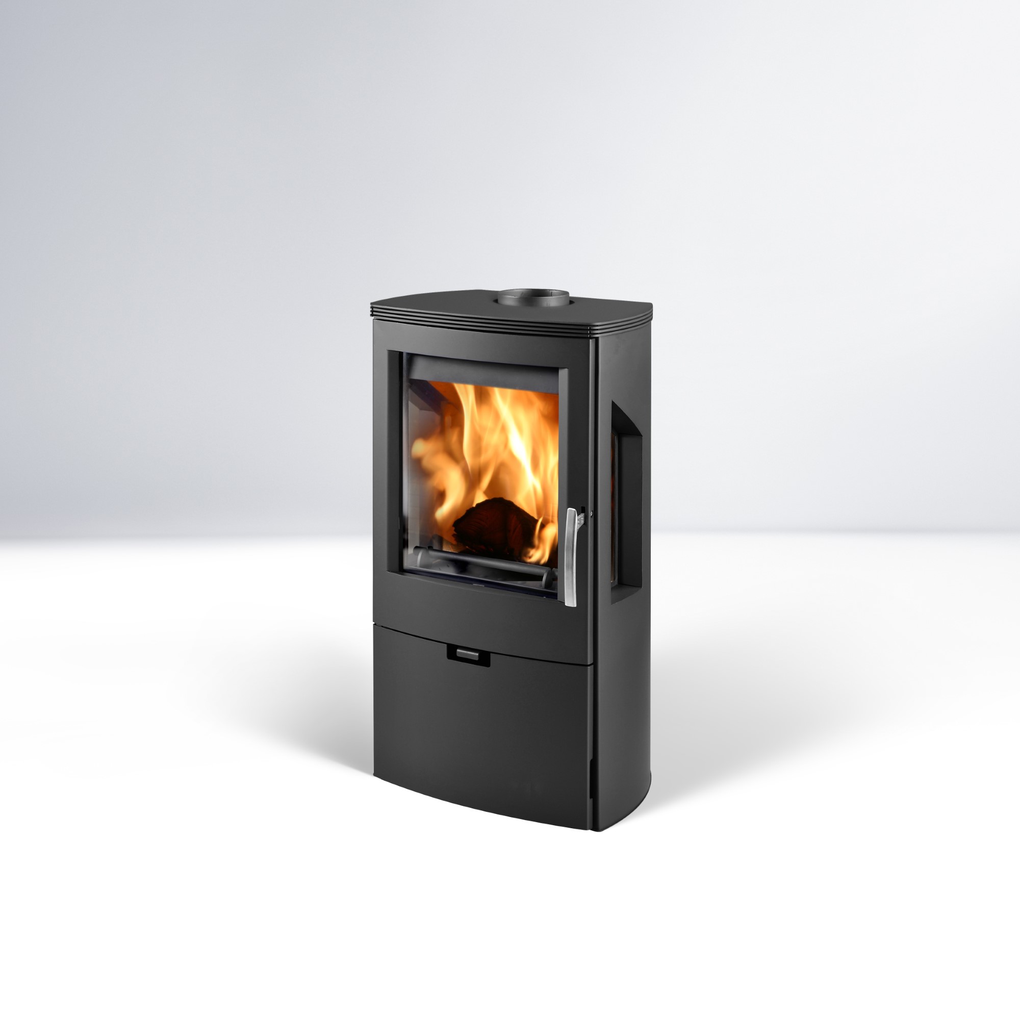 A tűztér alatti praktikus tárolóhely ideális a tűzifa számára, így mindig kényelmes hozzáférést és rendezett tárolást biztosít.