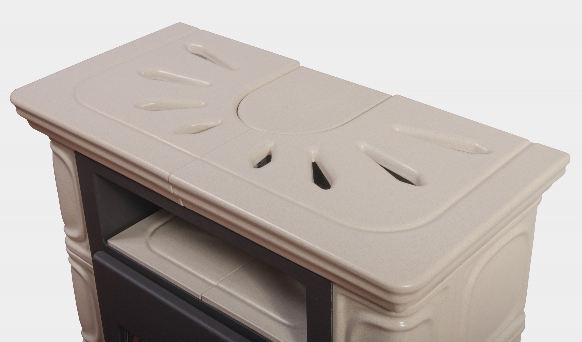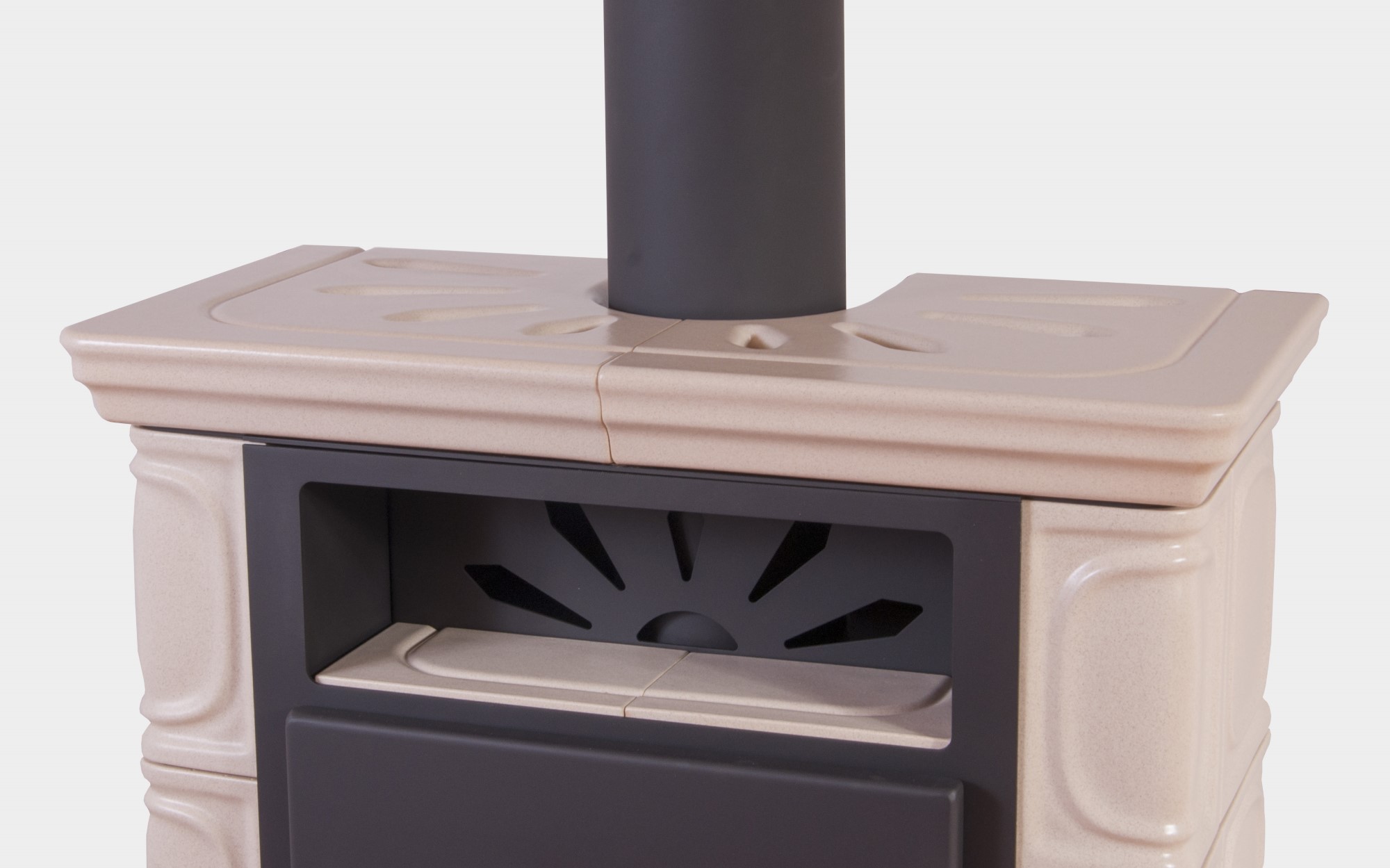 A kerámia burkolat garantálja a kellemes és egyenletes hőleadást, míg a tűztér fölötti rész ideális italok melegítésére, így a kandalló praktikus kiegészítője lehet otthonának. Tökéletes választás egy helyiség és annak közvetlen környezetének fűtésére, akár fő fűtési megoldásként, akár stílusos kiegészítő hőforrásként.
