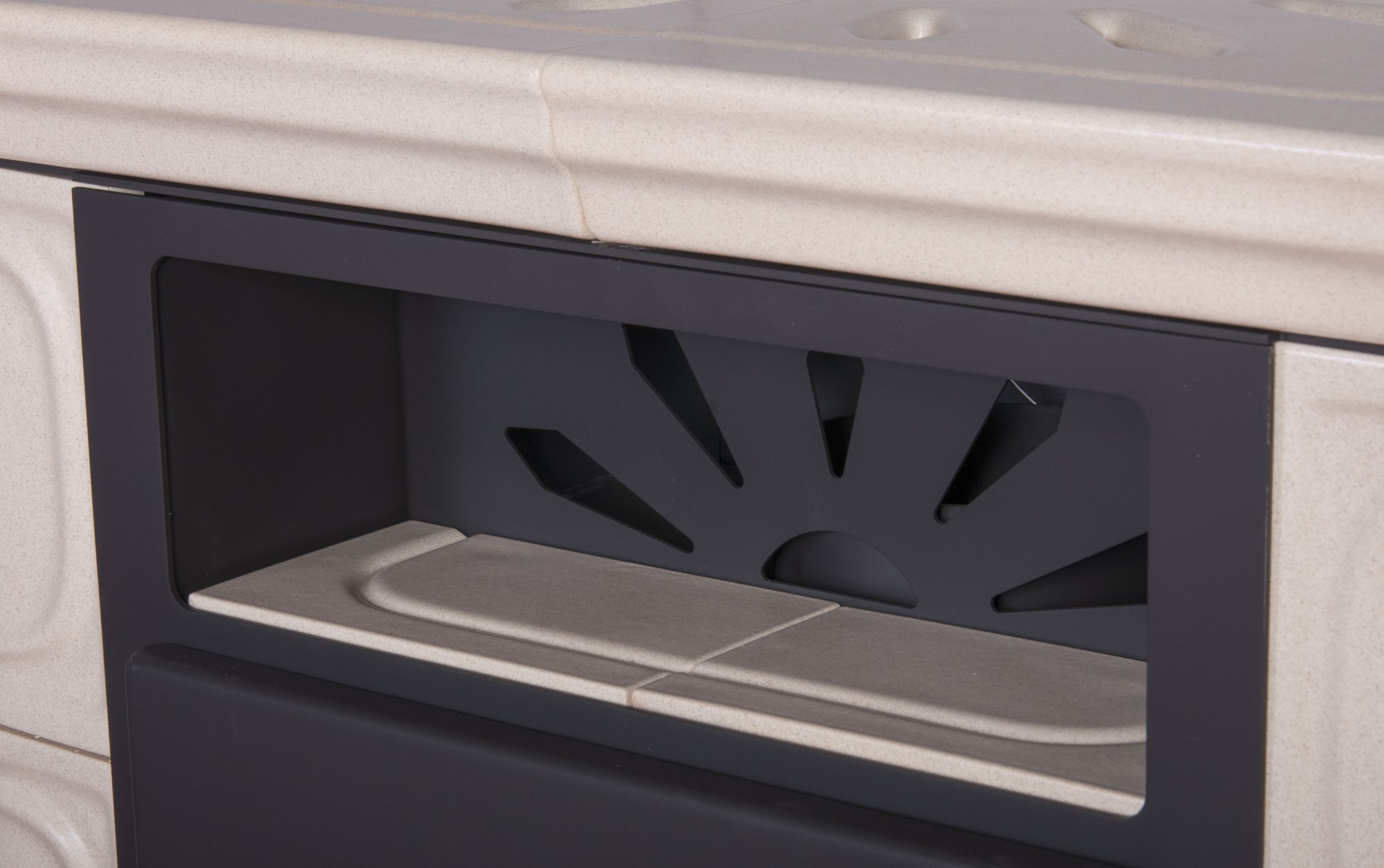 kellemes és egyenletes hőleadást, míg a tűztér fölötti rész